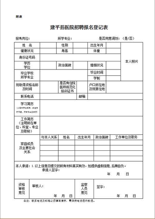 附件:建平县医院招聘报名登记表