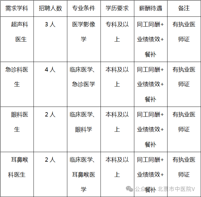 因工作需要,北票市中医院面向社会公开招聘专业技术人员,现将招聘条件公告如下:
