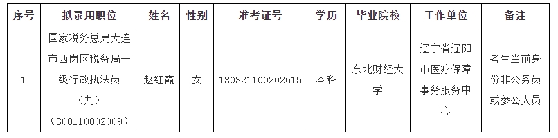 国家税务总局大连市税务局2023年度拟录用公务员公示公告(第六批)
