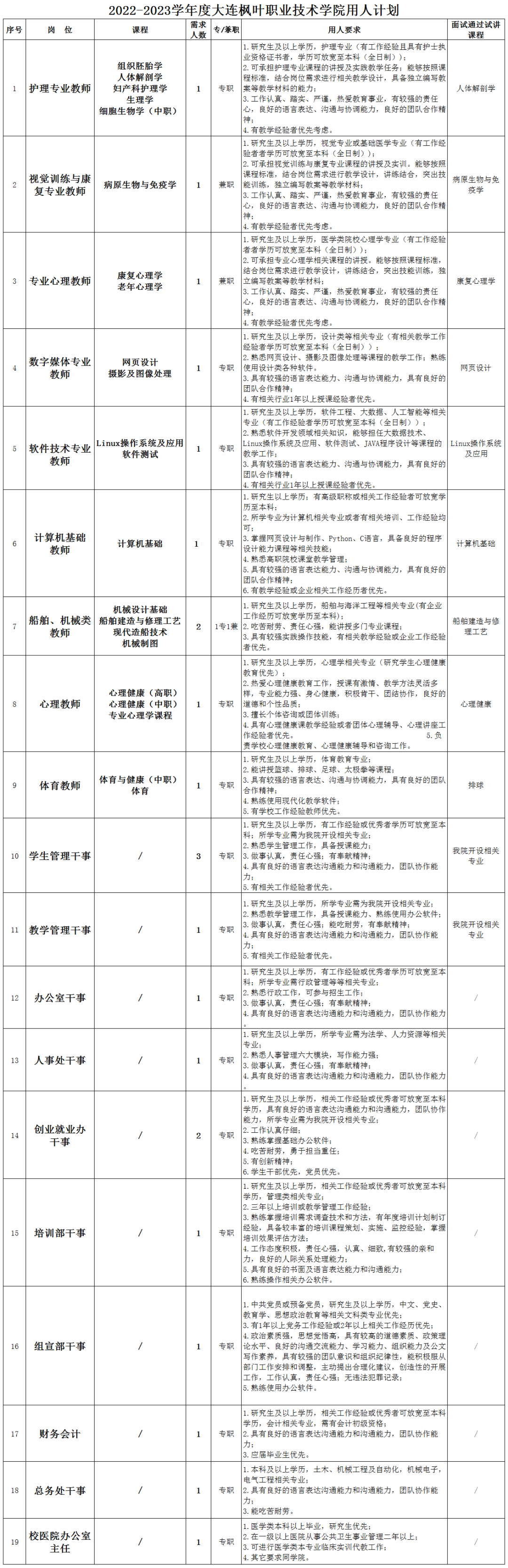 2022年大连枫叶职业技术学院招聘信息