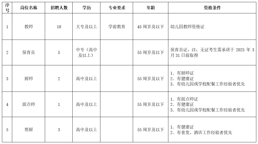 本次共招聘21名劳动合同制教职员工,具体岗位信息见《未来之星幼儿园教职员工人员岗位计划表》附件1