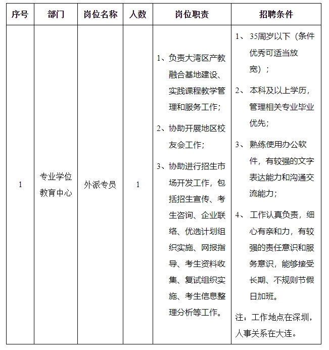 因工作需要,大连理工大学经济管理学院拟招聘派遣制工作人员1名(学院自聘),有关事宜如下: