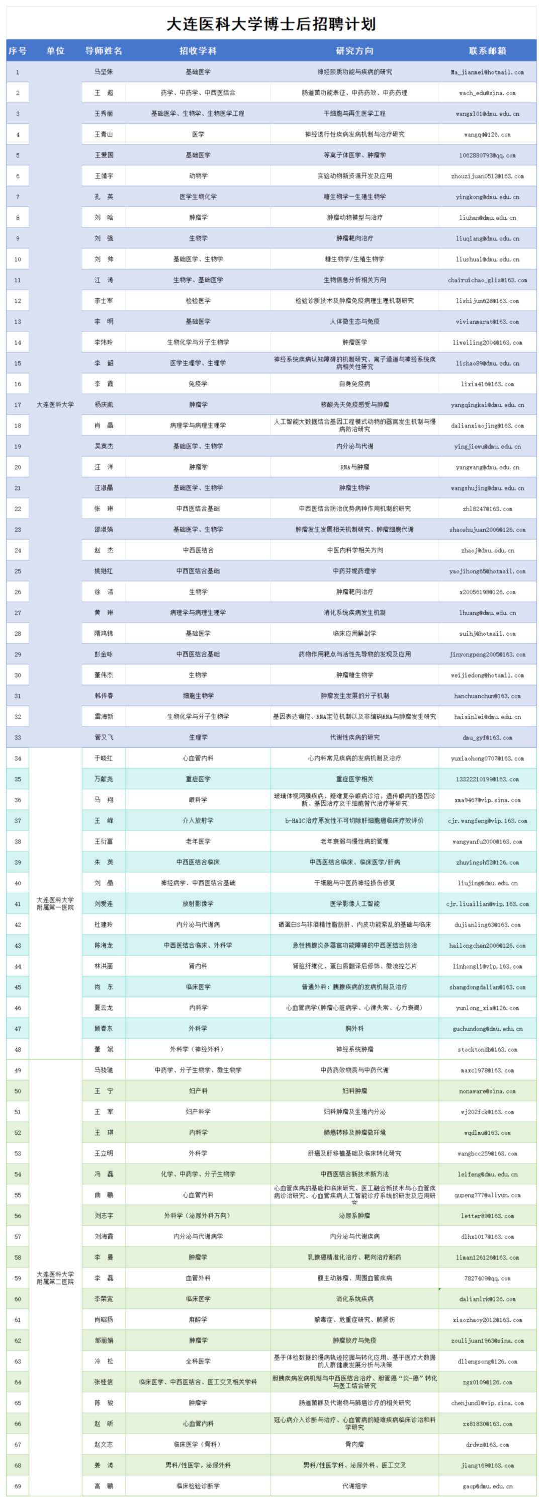 联系地址:辽宁省大连市旅顺南路西段9号大连医科大学人才工作办公室(博士后管理工作办公室)