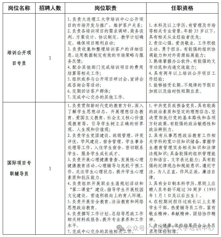 因工作需要,大连理工大学培训中心(远程与继续教育学院)拟面向社会公开招聘派遣制工作人员2名(自聘),有关事宜如下: