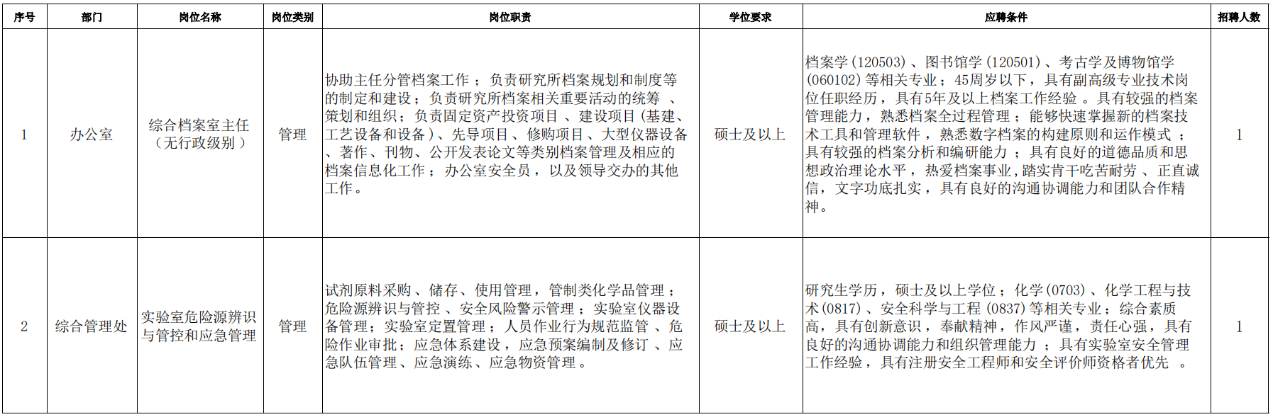 中国科学院大连化学物理研究所本着“按需设岗、公开招聘、竞争上岗、择优聘用”的原则,根据《大连化物所事业编制工作人员招聘实施细则(试行)》有关要求,现面向社会公开招聘职能部门工作人员2名,具体信息如下:
