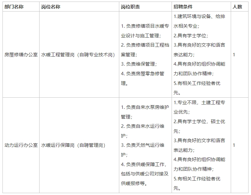 因工作需要,大连理工大学校园管理与修缮中心拟面向社会公开招聘工作人员2名(自聘),有关事宜如下: