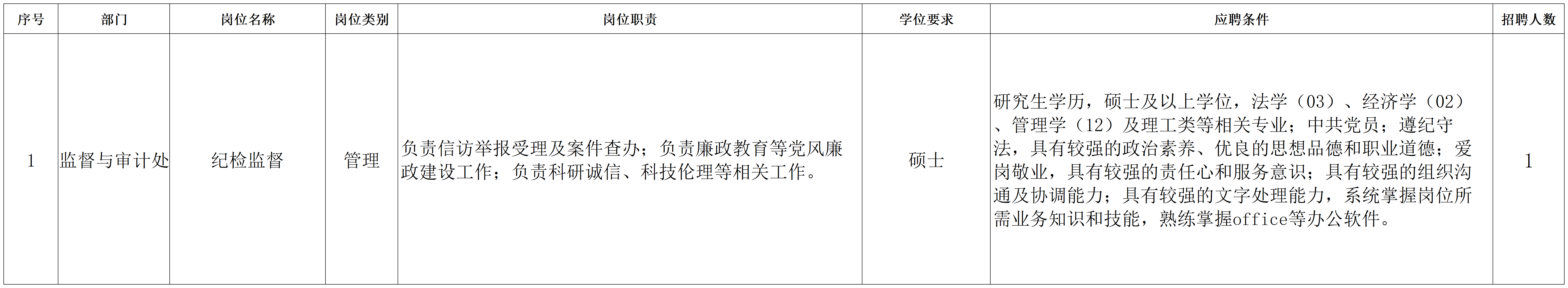 中国科学院大连化学物理研究所根据有关要求,现面向所内职工招聘监督与审计处事业编制工作人员1名,具体信息如下: