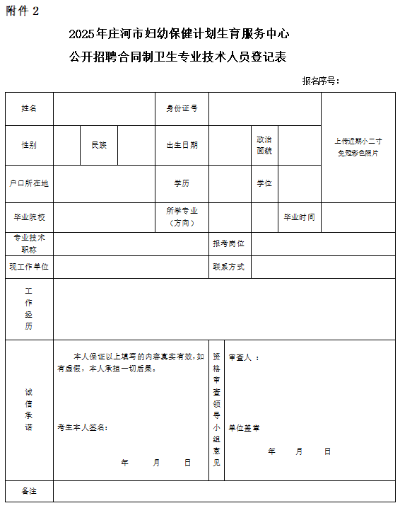 ① 2025年庄河市妇幼保健计划生育服务中心报名登记表(见附件2);