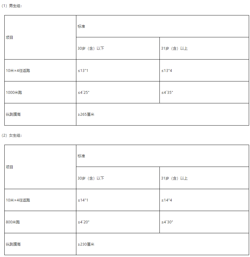 备注:年龄计算时间截止到参加体能测试当月。