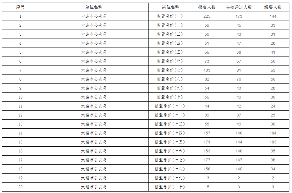 大连市公安局2025年面向社会公开招聘警务辅助人员报名情况 (截至2025年12月24日17时)