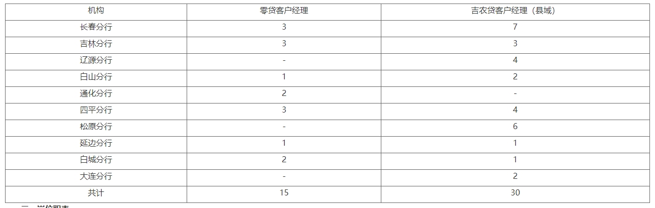 招聘热线: 长春分行 0431-81876019