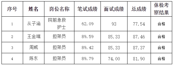 根据大连市急救中心招聘方案,经笔试、面试、考察、体检后,现将劳动合同制人员拟录用公示如下: