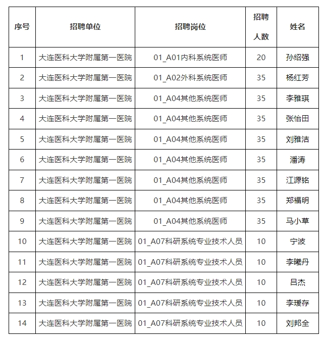 大连医科大学附属第一医院2024年公开招聘高层次人才第二批体检人员名单公布
