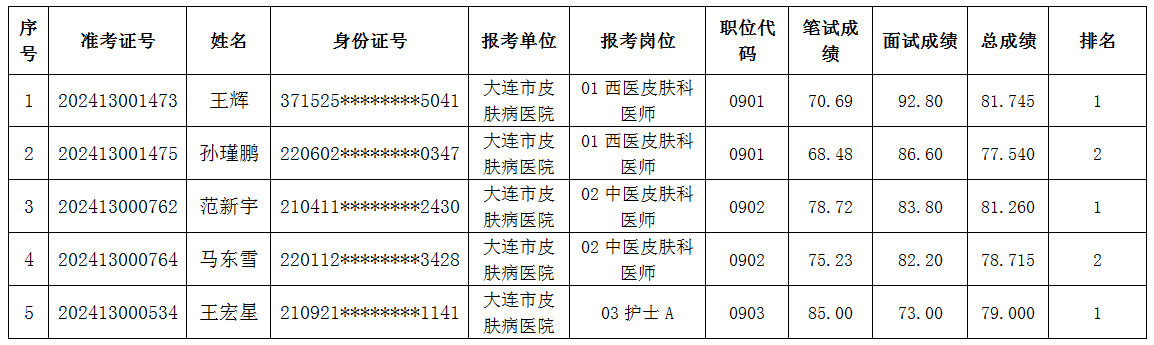 附件:2024年大连市皮肤病医院公开招聘参加体检和考察人员名单