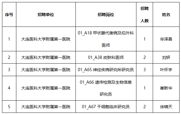 大连医科大学附属第一医院2025年公开招聘高层次人才第三批体检人员名单公布