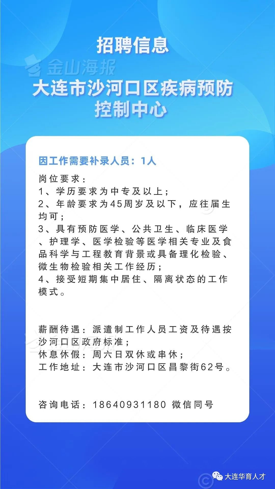 大连市沙河口区疾病预防控制中心招聘1人信息