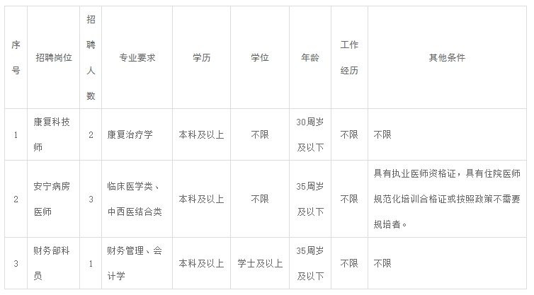 医院本次面向社会公开招聘合同制工作人员,详见计划表: