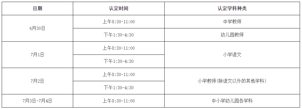上午8:30-11:00,下午1:30-4:30各学科都无需预约进行认定