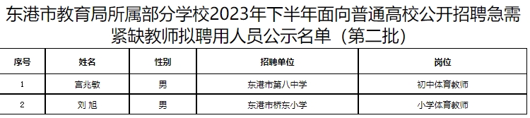 关于东港市教育局所属部分学校2023年下半年面向普通高校公开招聘急需紧缺教师拟聘用人员(第二批)的公告