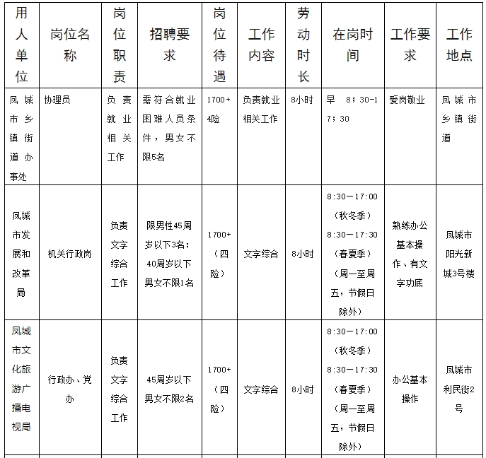 为加强对就业困难人员的就业帮扶,落实好公益性岗位就业援助政策,凤城县(市)区拟公开招聘部分公益性岗位人员,现将有关事项公告如下:
