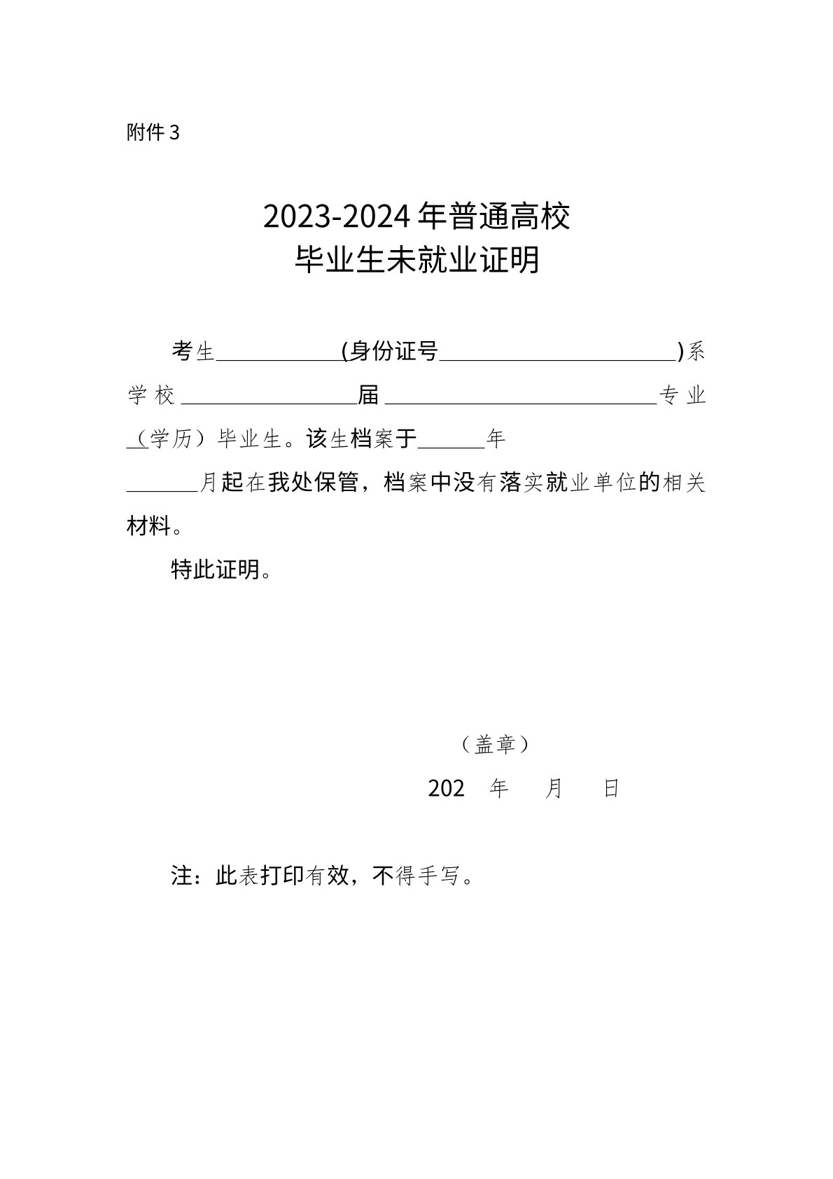 8.2023年、2024年离校未就业的普通高校毕业生,须提供未就业证明(模板在附件3下载)和社保部门出具的未缴费证明。其中,档案仍保留在毕业院校的,由毕业院校毕业生就业指导部门或省高校毕业生就业指导中心出具证明;档案已转到县(市、区)级及以上政府人事、教育部门所属人才服务机构或毕业生就业工作机构保管的,由相应的档案保管部门出具证明。