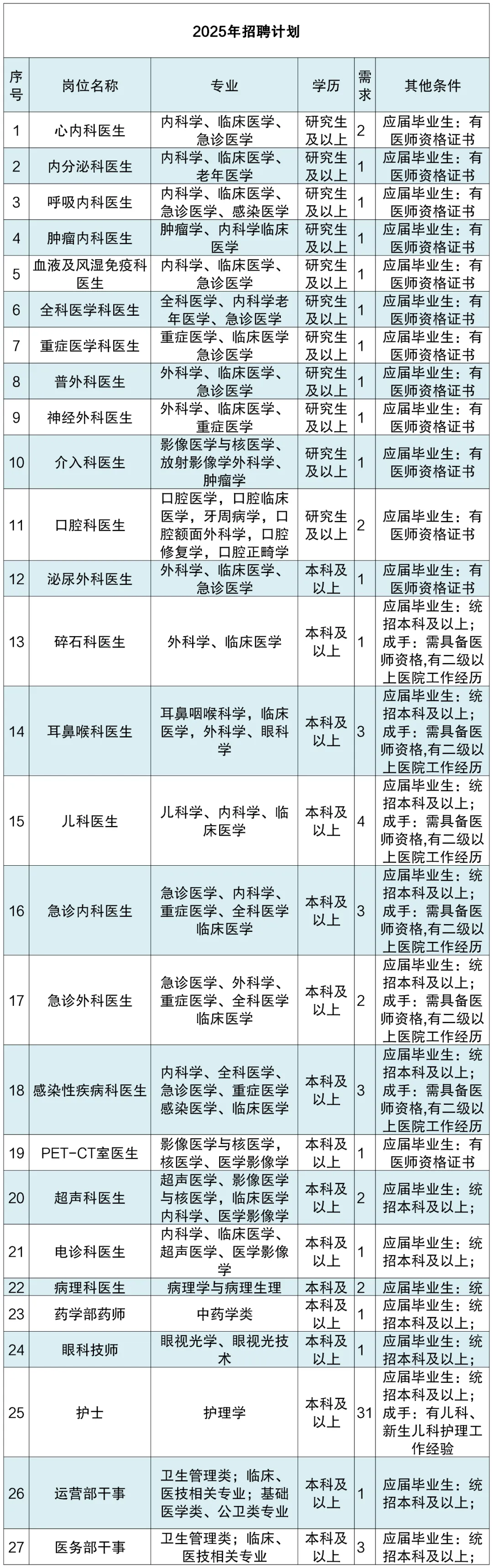 2、经住培合格的本科学历临床医师,按临床医学、口腔医学、中医专业学位硕士专业学位研究生同等对待,住培合格证书中的培训专业应与招聘岗位的专业或类别要求相一致。