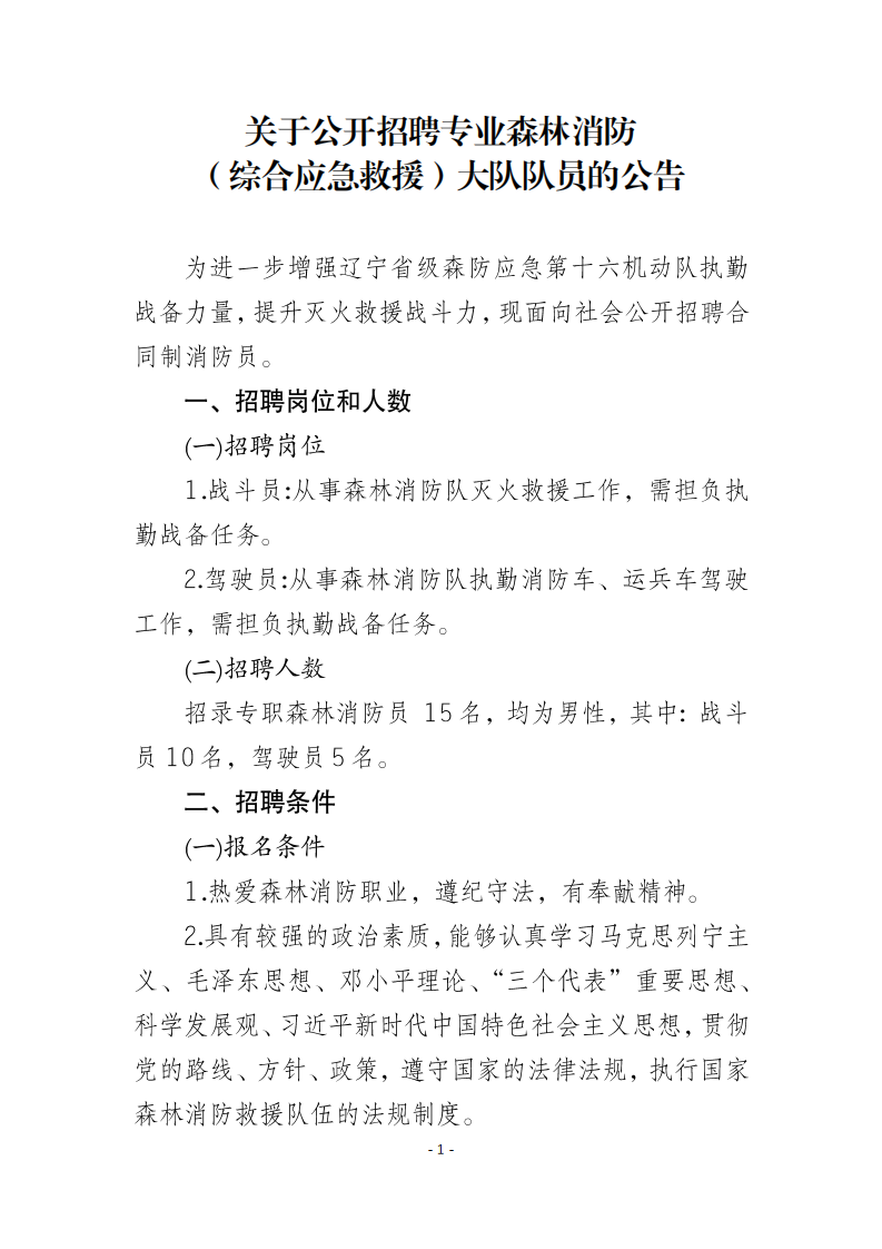 2024抚顺清原县招聘专业森林消防(综合应急救援)大队队员15人