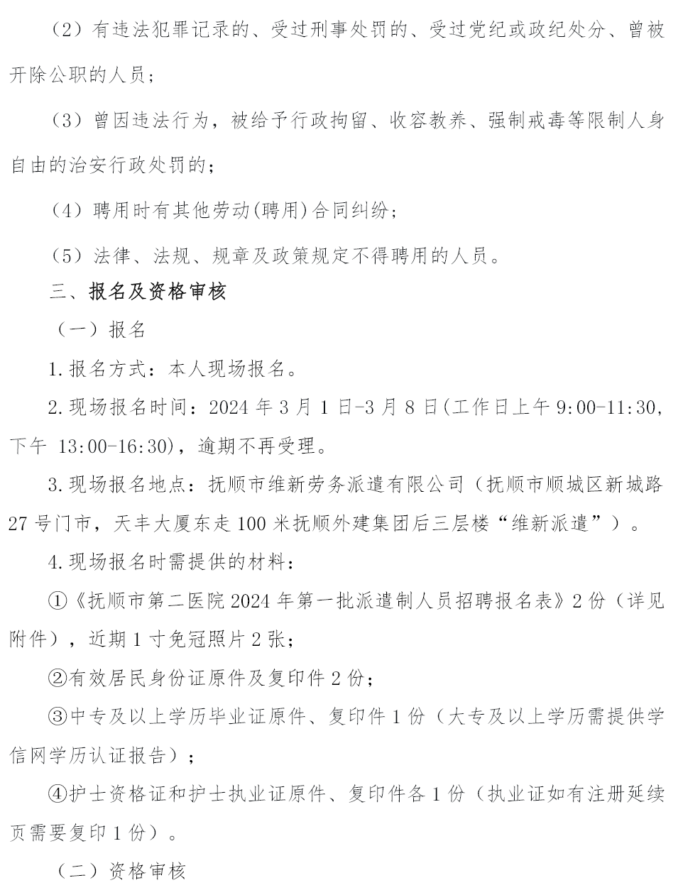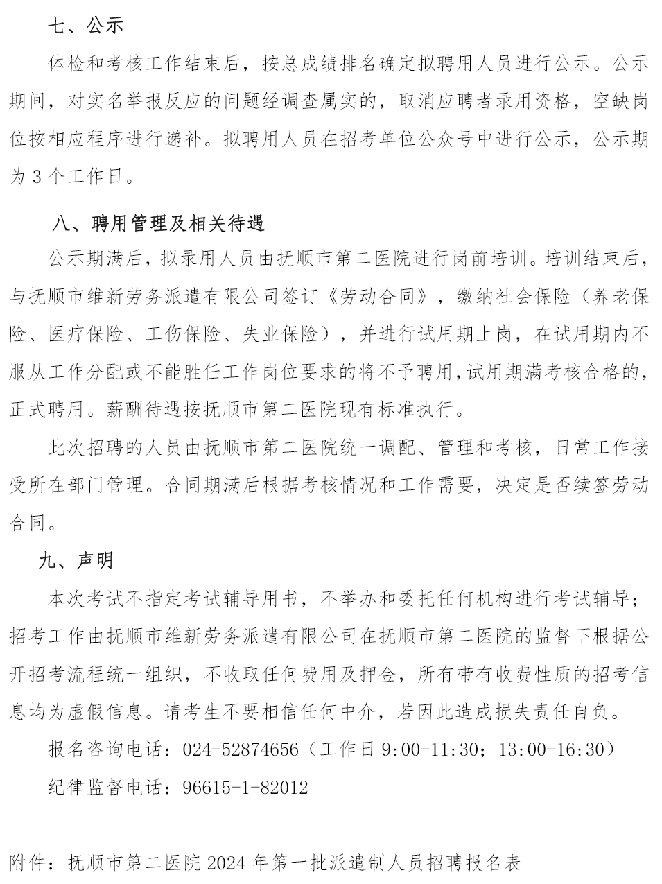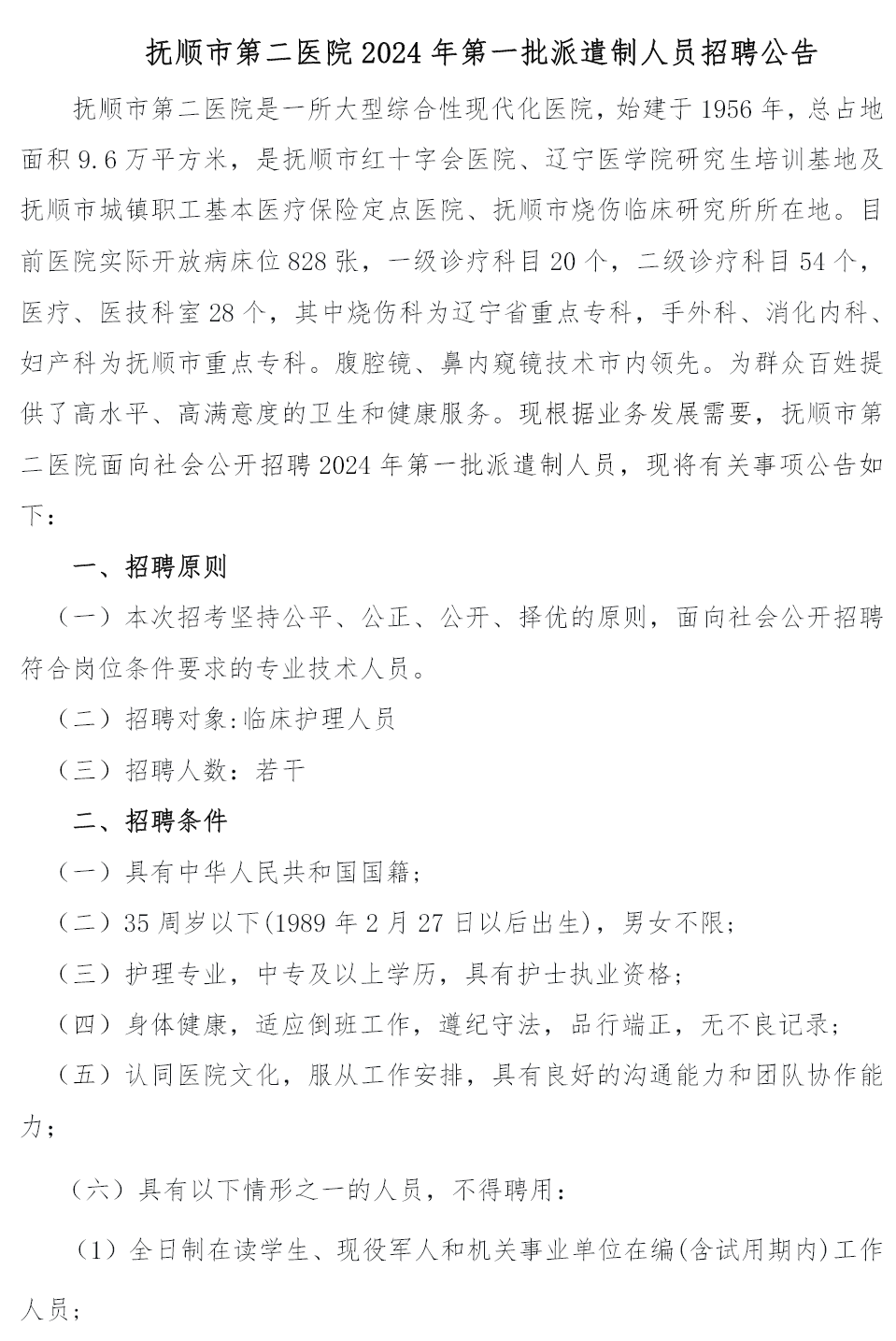 抚顺市第二医院2024年第一批派遣制人员招聘公告
