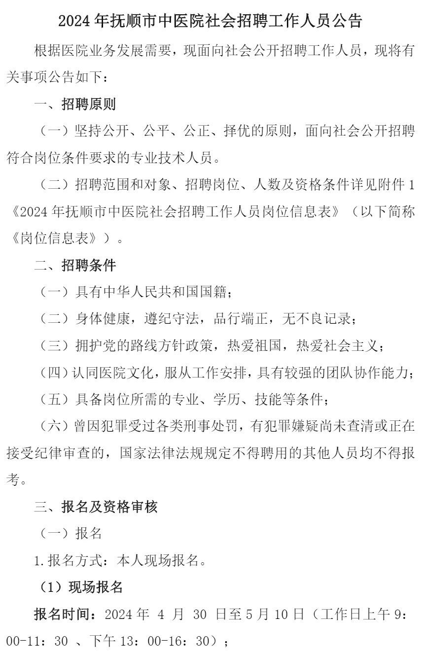2024年抚顺市中医院社会招聘工作人员公告