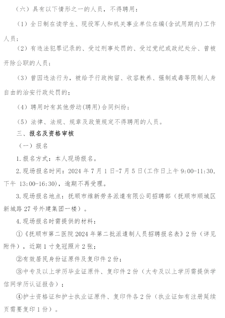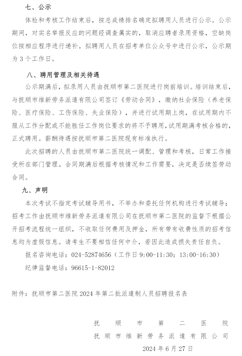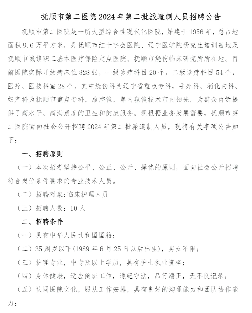 抚顺市第二医院2024年第二批派遣制人员招聘10人公告