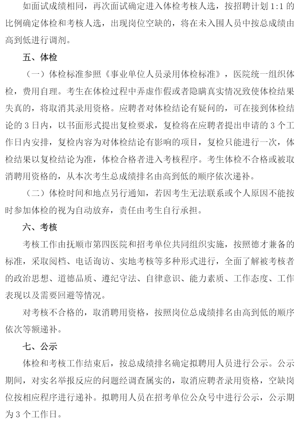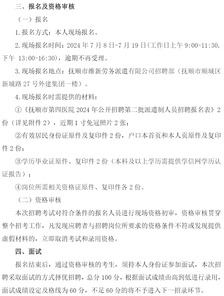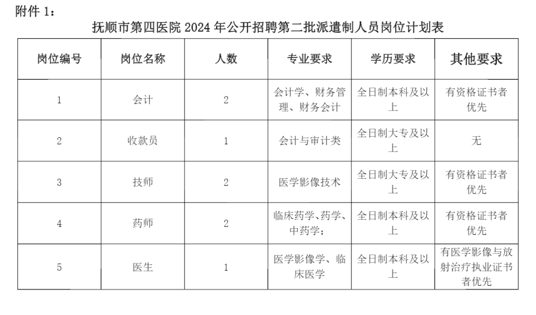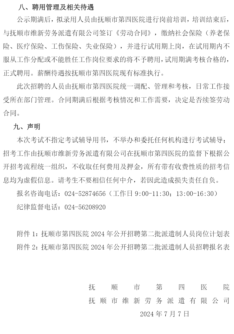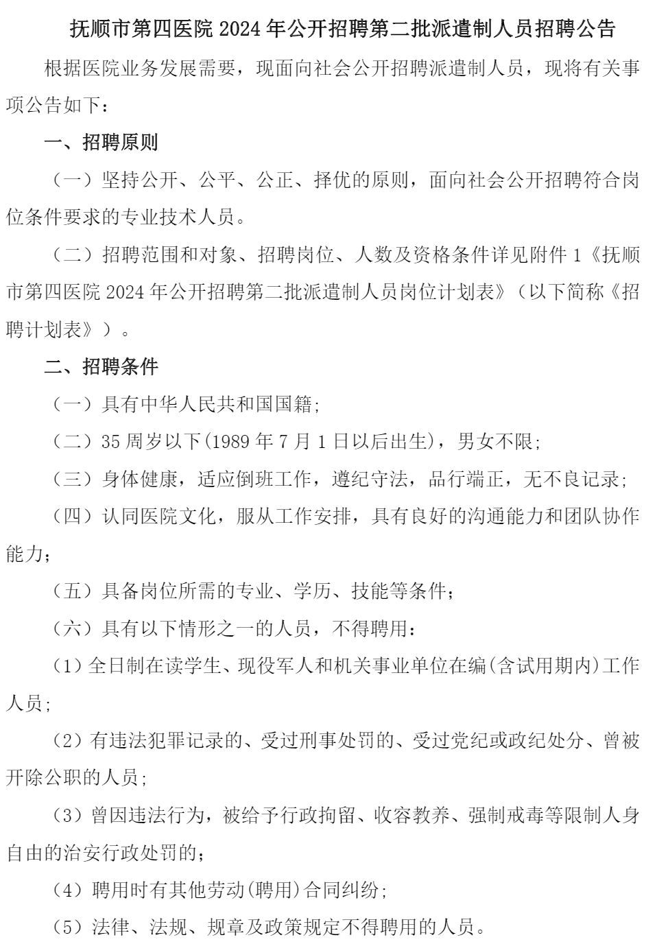 抚顺市第四医院2024年公开招聘第二批派遣制人员招聘8人公告