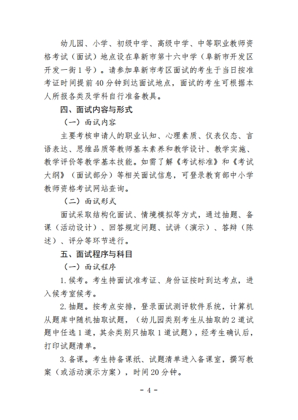 阜新市2024年下半年中小学(幼儿园)中等职业教师资格考试(面试)公告