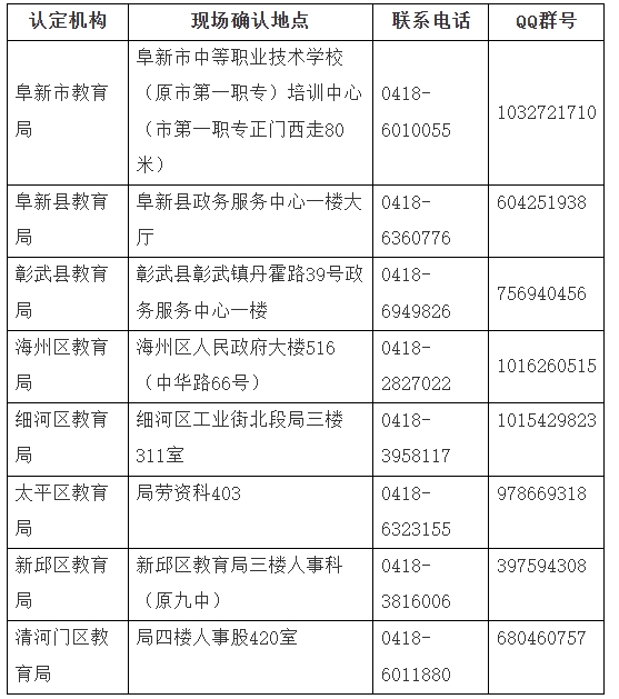 申请高级中学、中等职业学校、中等职业学校实习指导教师资格,认定机构选择阜新市教育局。