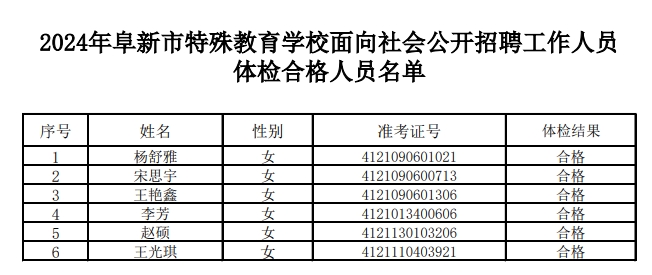 2024年阜新市特殊教育学校面向社会公开招聘工作人员体检合格人员名单
