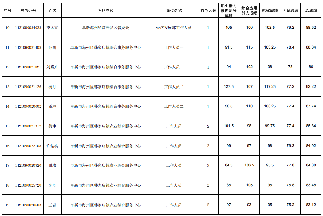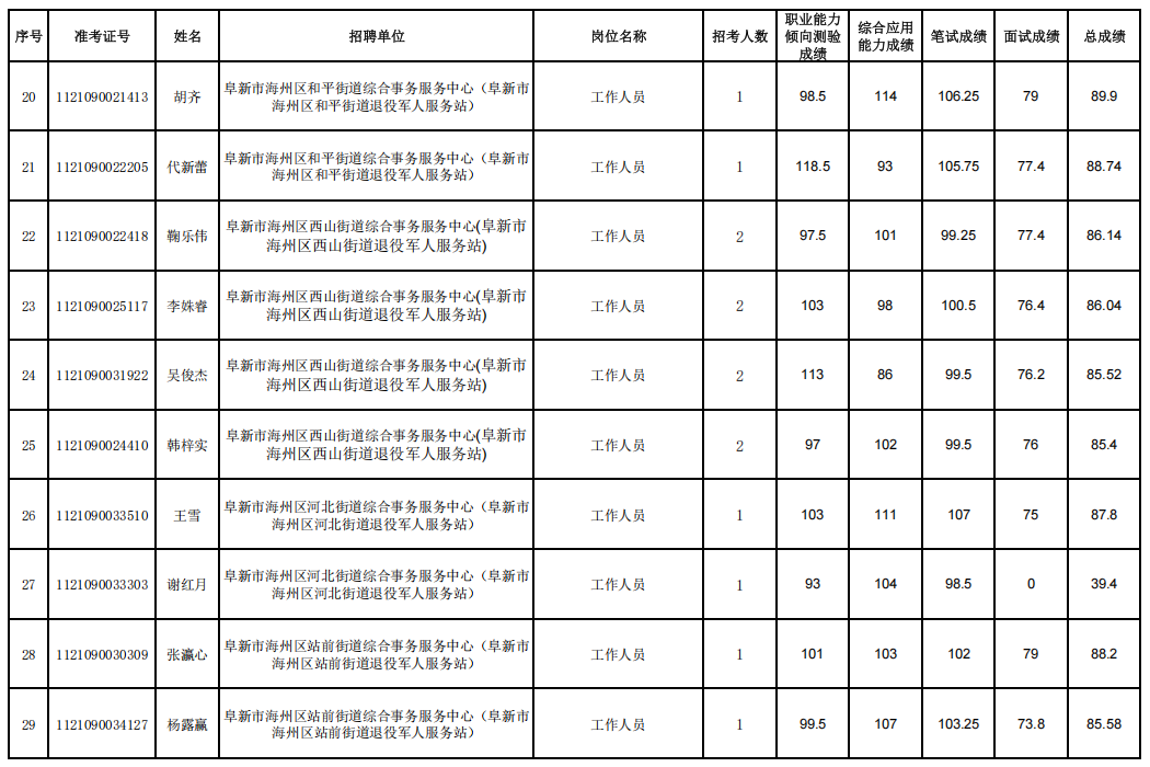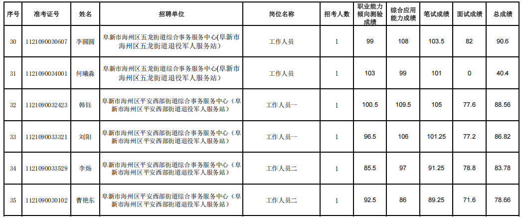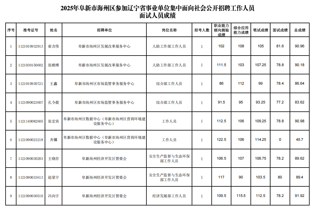 2025年阜新市海州区参加辽宁省事业单位集中面向社会公开招聘工作人员面试人员成绩