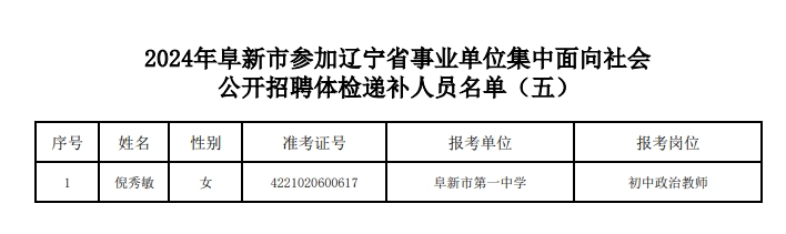 2024年阜新市参加辽宁省事业单位集中面向社会公开招聘体检递补人员名单(五)