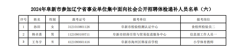 2024年阜新市参加辽宁省事业单位集中面向社会公开招聘体检递补人员名单(六)