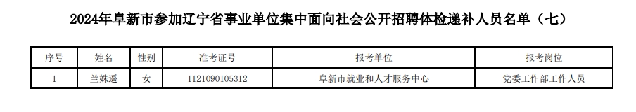 2024年阜新市参加辽宁省事业单位集中面向社会公开招聘体检递补人员名单(七)