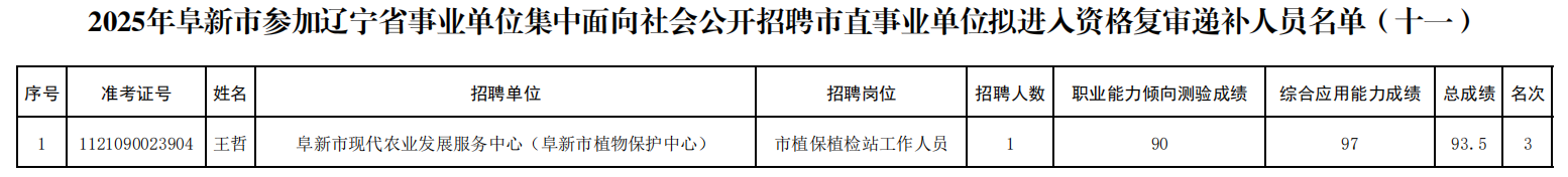 2025年阜新市参加辽宁省事业单位集中面向社会公开招聘市直事业单位 拟进入资格复审递补人员名单(十一)