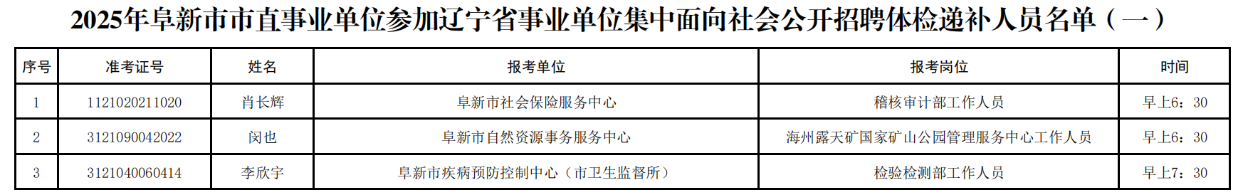 2025年阜新市市直事业单位参加辽宁省事业单位集中面向社会公开招聘体检递补人员名单(一)
