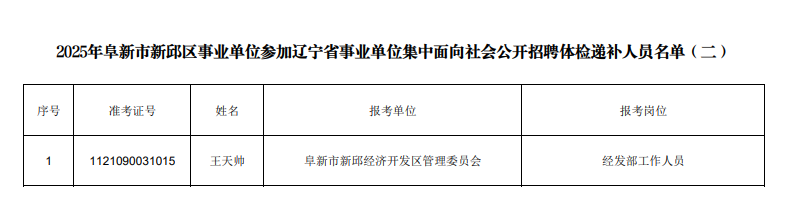 2025年阜新市新邱区事业单位参加辽宁省事业单位集中面向社会 公开招聘体检递补人员名单(二)