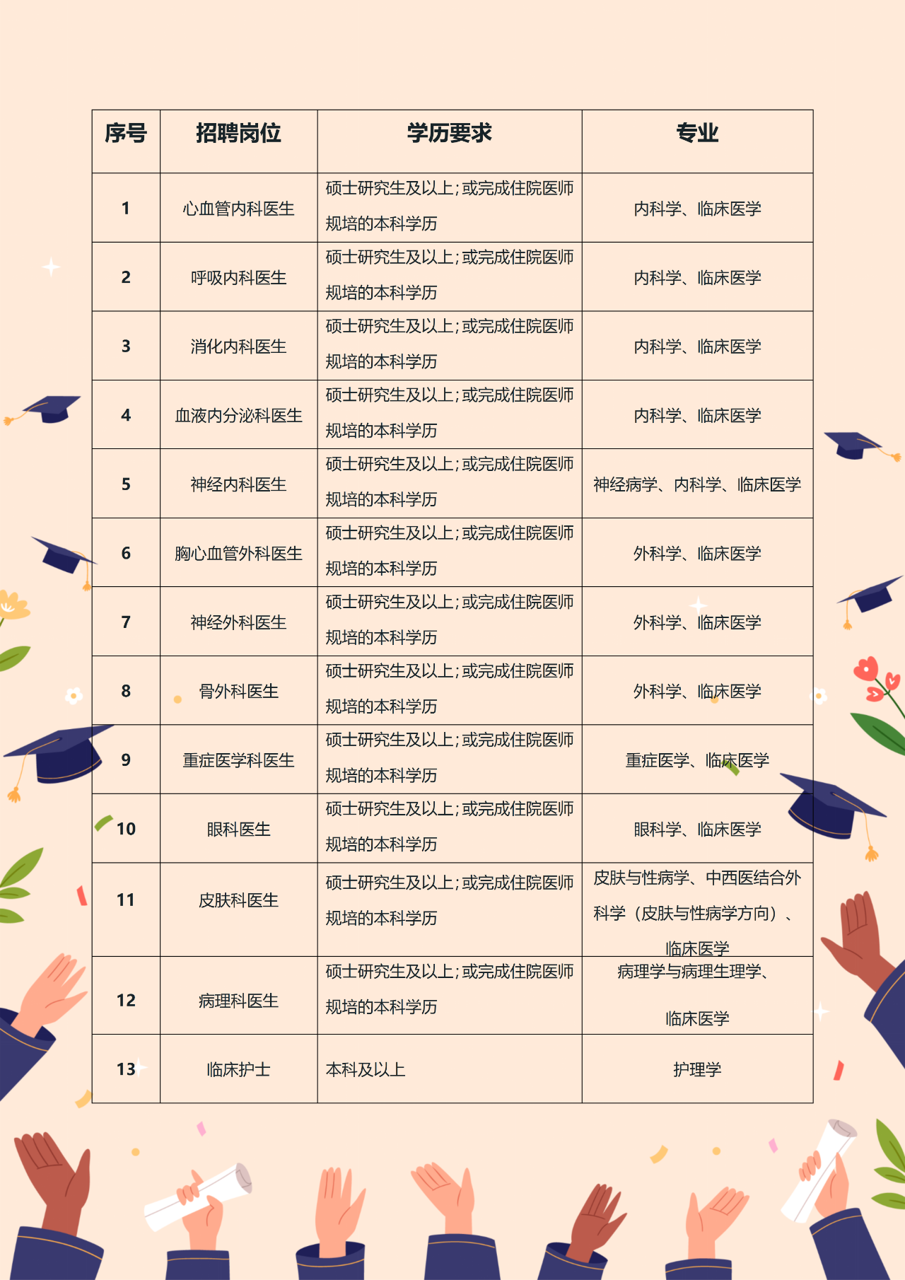 4.医师岗位面向社会全年招聘具有本科学历、执业医师证、住培合格证在职医生。具有三级综合医院临床工作经历者优先。
