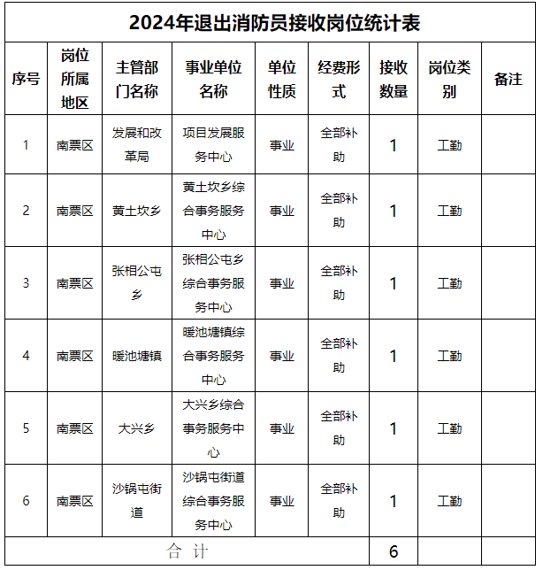 按照国务院办公厅关于印发《国家综合性消防救援队伍退出消防员安置办法(试行)》(国办发〔2024〕45号)文件要求,经相关部门联审,现将南票区退伍消防兵安置岗位予以公示: