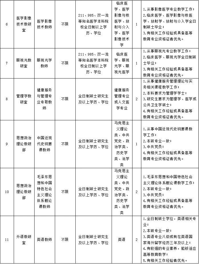 http://www.moe.gov.cn/)扫描件各一份。将以上所有材料投递到ylxy0523@126.com邮箱内(邮件主题为:应聘岗位-姓名-毕业院校-专业-学历,电子版材料以本人姓名命名),同时加QQ群:796440439(医疗学院招聘群),申请入群时所用格式:姓名+所报专业,所有招聘相关事宜在群里通知。