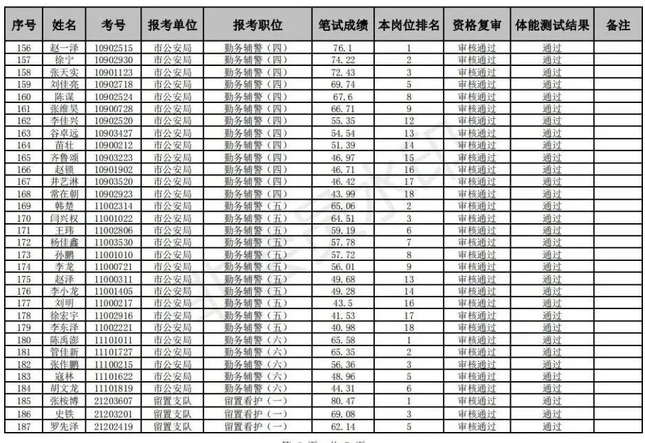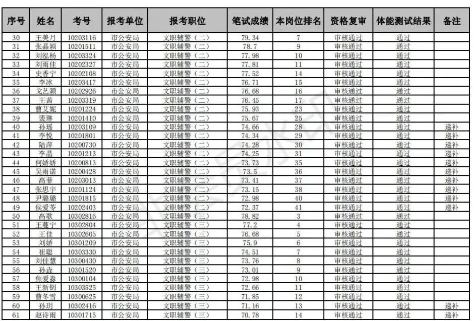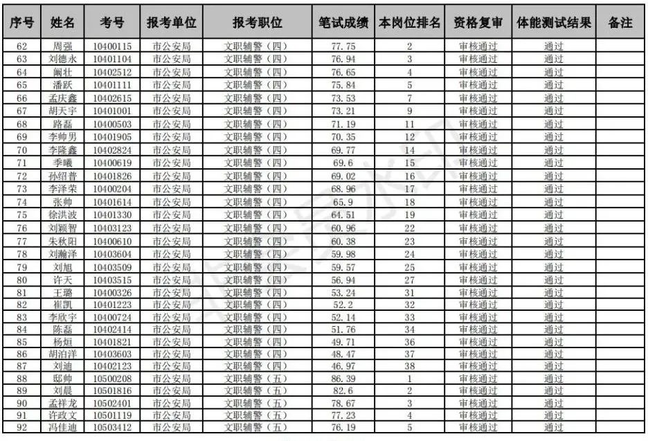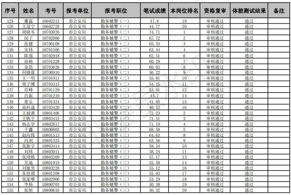 2022年锦州市公安局警务辅助人员(含留置看护队员)招聘资格复审和体能测试工作(含递补)已经结束,现将资格复审和体能测试合格人员名单(即进入面试人员名单)面向社会公示,公示期为3个工作日,在此期间,社会各界均可通过来电、来访等形式参与监督,以单位名义反映问题应加盖公章,以个人名义反映问题提倡报本人真实姓名。