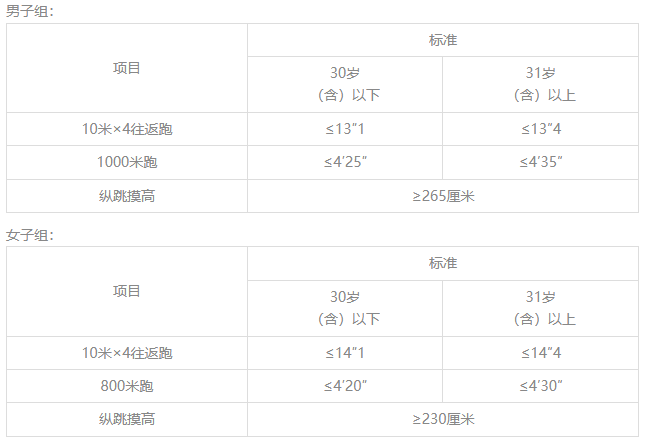 备注:年龄计算时间截止到参加体能测试当日。