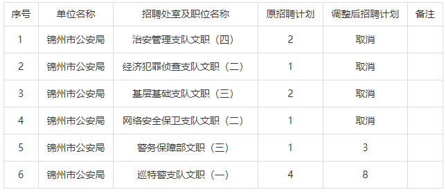 关于2025年锦州市公安局招聘警务辅助人员部分职位招考计划调整的公告