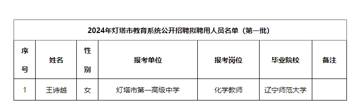 附件:2024年灯塔市教育系统公开招聘拟聘用人员名单(第一批)