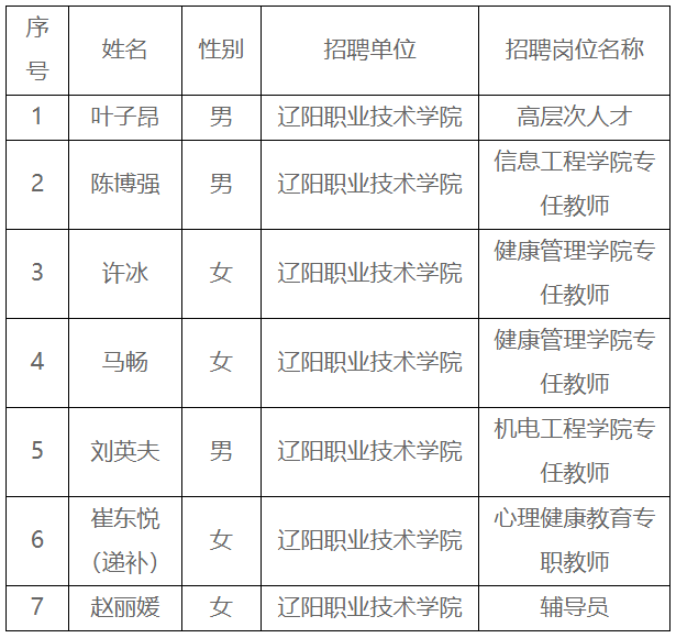 2025年辽阳职业技术学院公开招聘专业技术人员体检人员名单