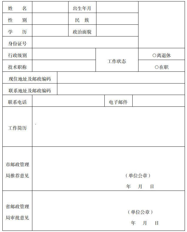 聘请人员通过电子邮件的方式将《邮政特邀监督员推荐登记表》电子版填写并发到指定邮箱。